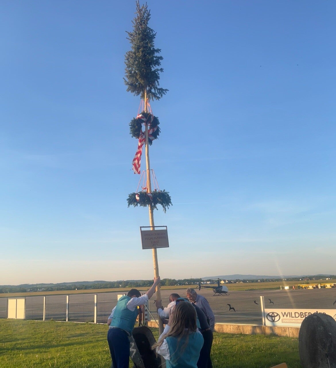 Erleben Sie das Aufstellen des Maibaums, ein traditionelles Fest mit Musik, Tanz und guter Laune.